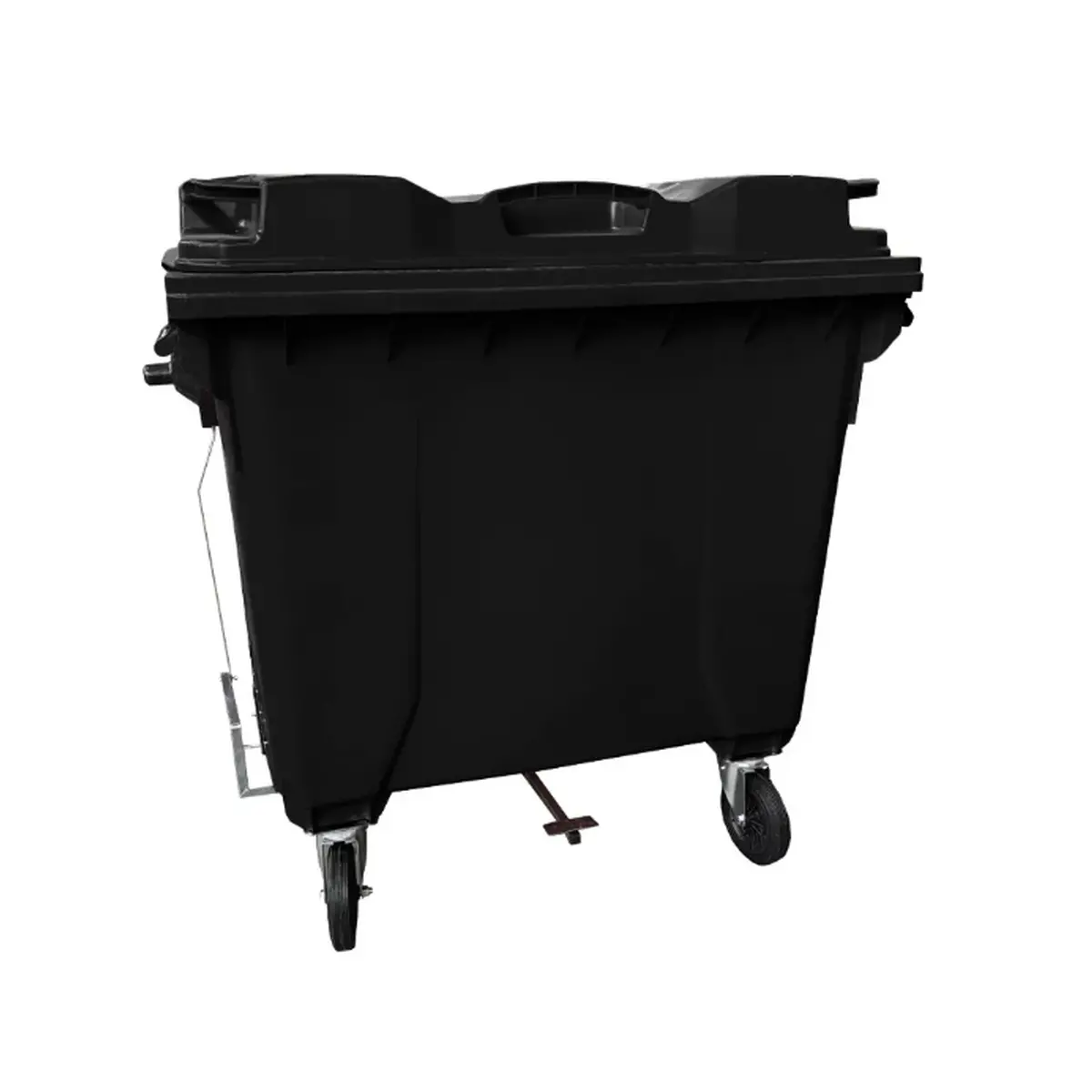 Container de lixo com capacidade de 1000 litros, fabricado em polietileno de alta densidade (PEAD) ou polipropileno (PP), oferecendo alta resistência, durabilidade e segurança.