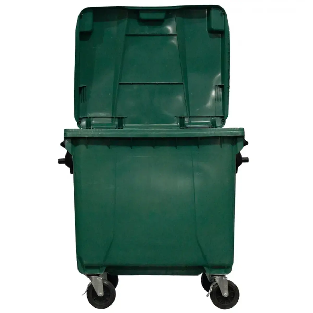 Container de lixo com capacidade de 1000 litros, fabricado em polietileno de alta densidade (PEAD) ou polipropileno (PP), oferecendo alta resistência, durabilidade e segurança.